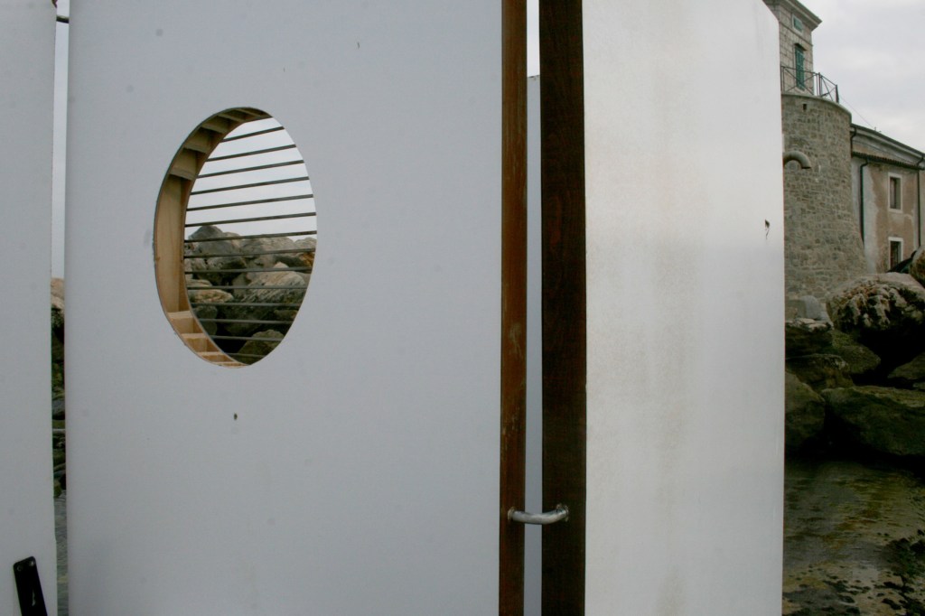 Na betonskem pomolu v Piranu se s pavilionom ustvari prostor intime s čudovitimi razgledi na morje ter na drugi strani na staro mestno jedro.