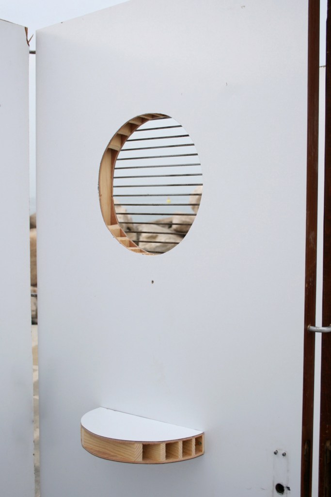 Five matching wooden doors joined by mechanical joints only have been used, which makes the structure modular and mobile.